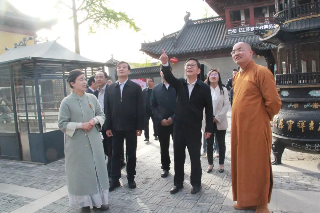 4月12日,省人大常委会一行来我市开展《江苏省宗教事务条例》执法检查。盐城市人大常委会副主任崔浩,我市人大常委会主任周爱东,市委常委、统战部部长王颜勤参加活动。